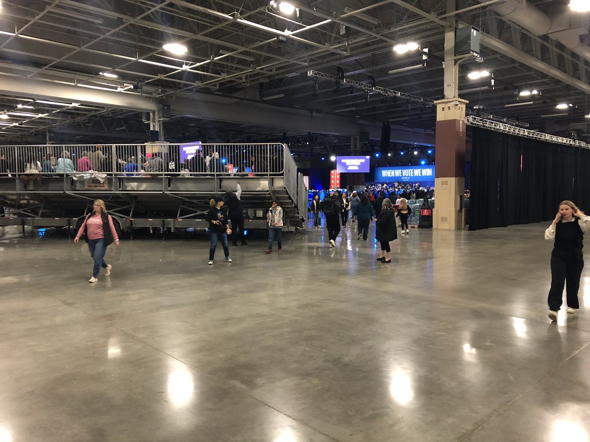 We luisteren weer naar de muziek die kennelijk bij de Harris-campagne hoort. Erg veel vrouwelijke artiesten. We luisteren nu naar 'I'm coming out' van Diana Ross. De journalisten die van hier zijn vertellen ondertussen dat Harris gepland is voor 21.00 uur.