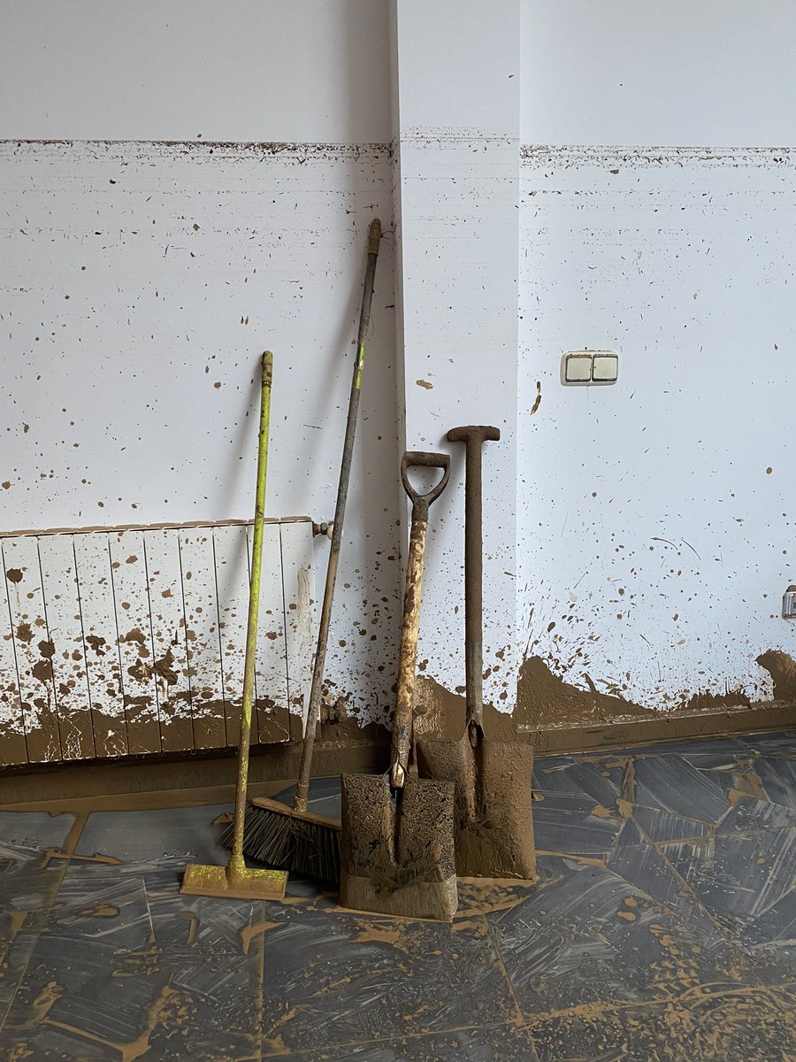 Rascar el suelo de toda una casa con palas durante horas para sacar una masa plástica y pesada de 20 centímetros de barro a la calle. Y dejarte la espalda.