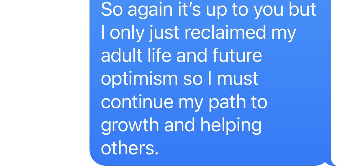 That she cannot outright admit her guilt for encouraging transition, instead blaming it on me being suicidal, indicates she hasn’t found peace.