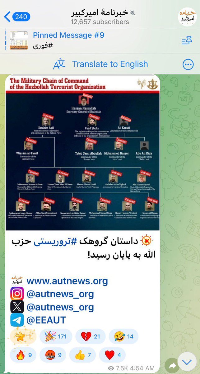 This channel has also posted IDF kill charts, praised Israeli assassinations, made racist remarks about Afghan migrants, and spread baseless claims like "Hamas" and "Hashd al-Shaabi" students taking over Iranian universities.
