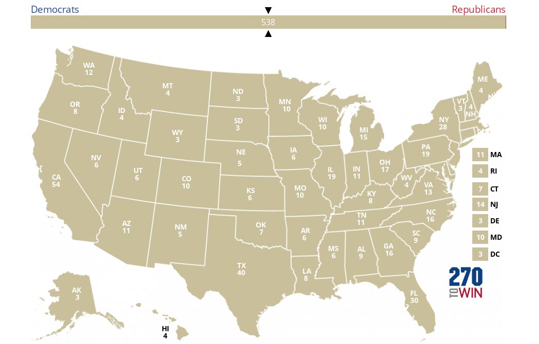 226 pontos dos estados tradicionalmente democratas