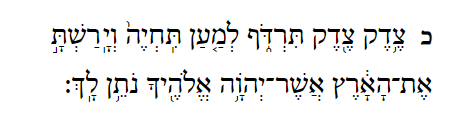 It translates as "Righteousness, righteousness, you shall pursue". It's from the book of Devarim (Deuteronomy).