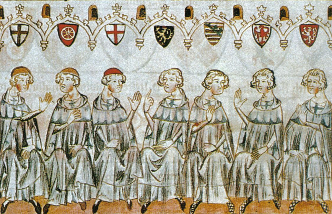 According to the Golden Bull of 1356, seven “prince-electors” cast their votes: the archbishop of Mainz, the archbishop of Trier, the archbishop of Cologne, the king of Bohemia, the count palatine of the Rhine, the duke of Saxony and the margrave of Brandenburg.
