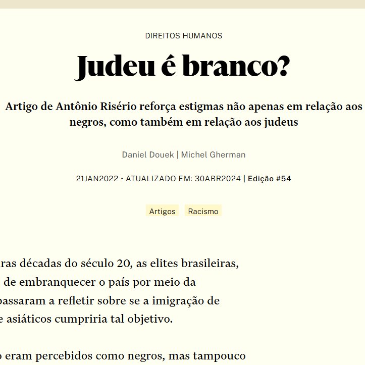 O argumento também aparece em outra publicação de Michel Gherman. Segundo o membro da ONG, que é de origem polonesa, "é uma falácia que judeus são brancos".