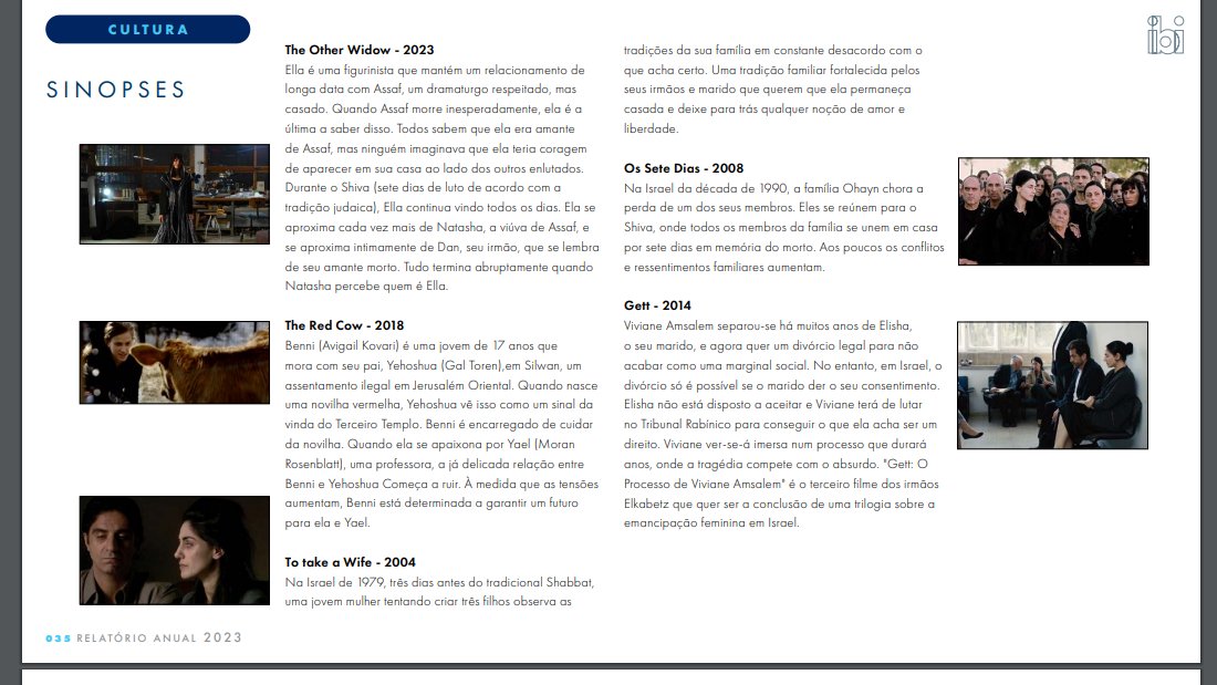 Instituto Brasil-Israel também faz propaganda do Sionismo através de mostras de filmes que procuram escamotear a realidade de Apartheid e Genocídio, ou seja, limitando a temática de filmes apresentados como "De Israel" a películas que não abordem a segregação racial.