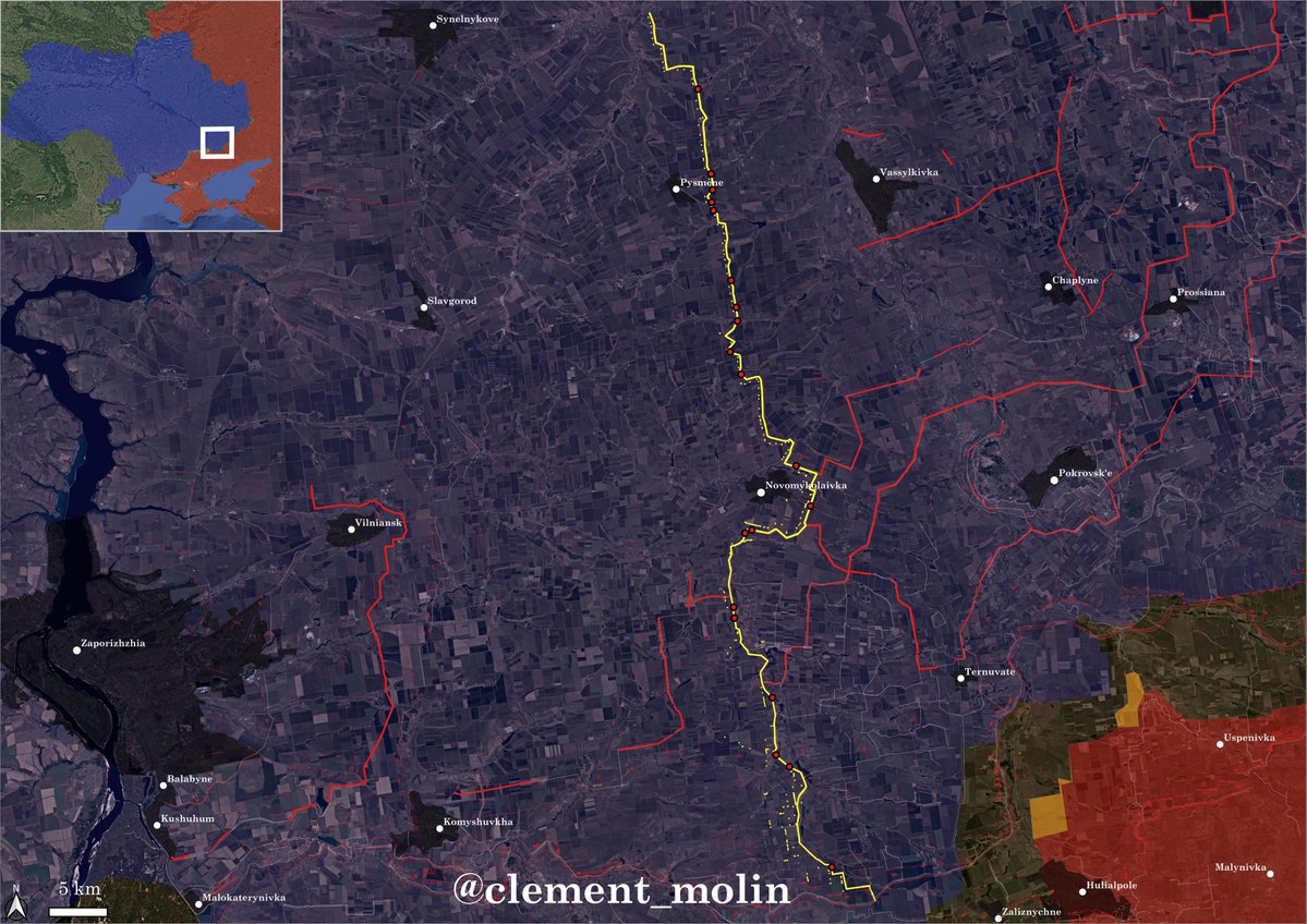 First "New Donbas Line" style prepared in the Zaporizhzhia and Dnipropetrovsk region, this line is covered north of Novomykolaivka by 3 other lines, while only one before Novomykolaivka.