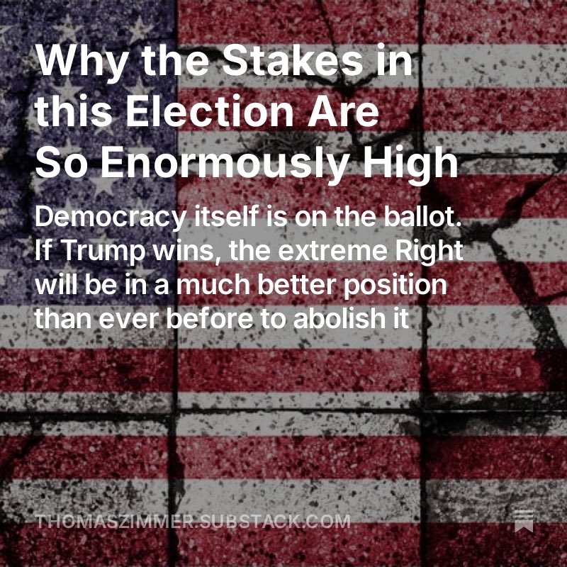 Democracy itself is on the ballot. If Trump wins, the extreme Right will be in a much better position than ever before to abolish it.