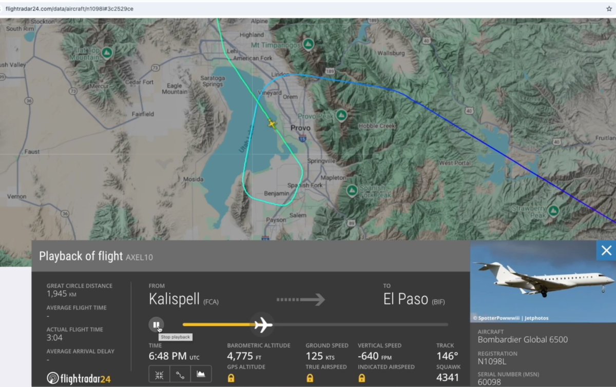 ...24 minutes after Charlie Kirk was shot, and descends again to 200' and slows to stall speed, again, for the second time that day, in the same spot, adjacent to UVU.