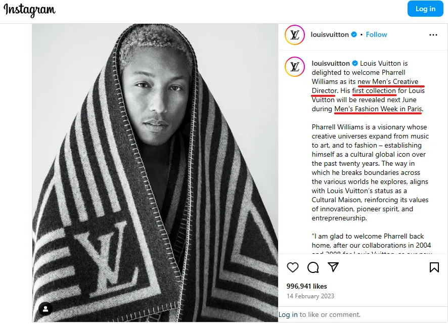 23. Louis Vuitton | Louis Vuitton is delighted to welcome Pharrell Williams as its new Men’s Creative Director….