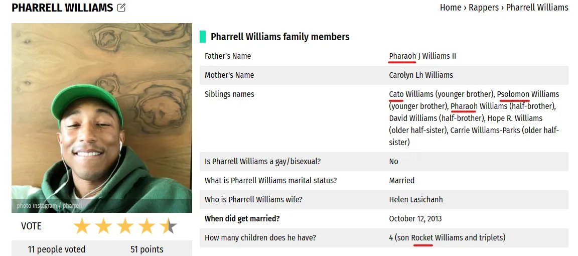 19. Pharrell Williams dad is called Pharoah Williams and his mother Carolyn is said to have four degrees...🤔