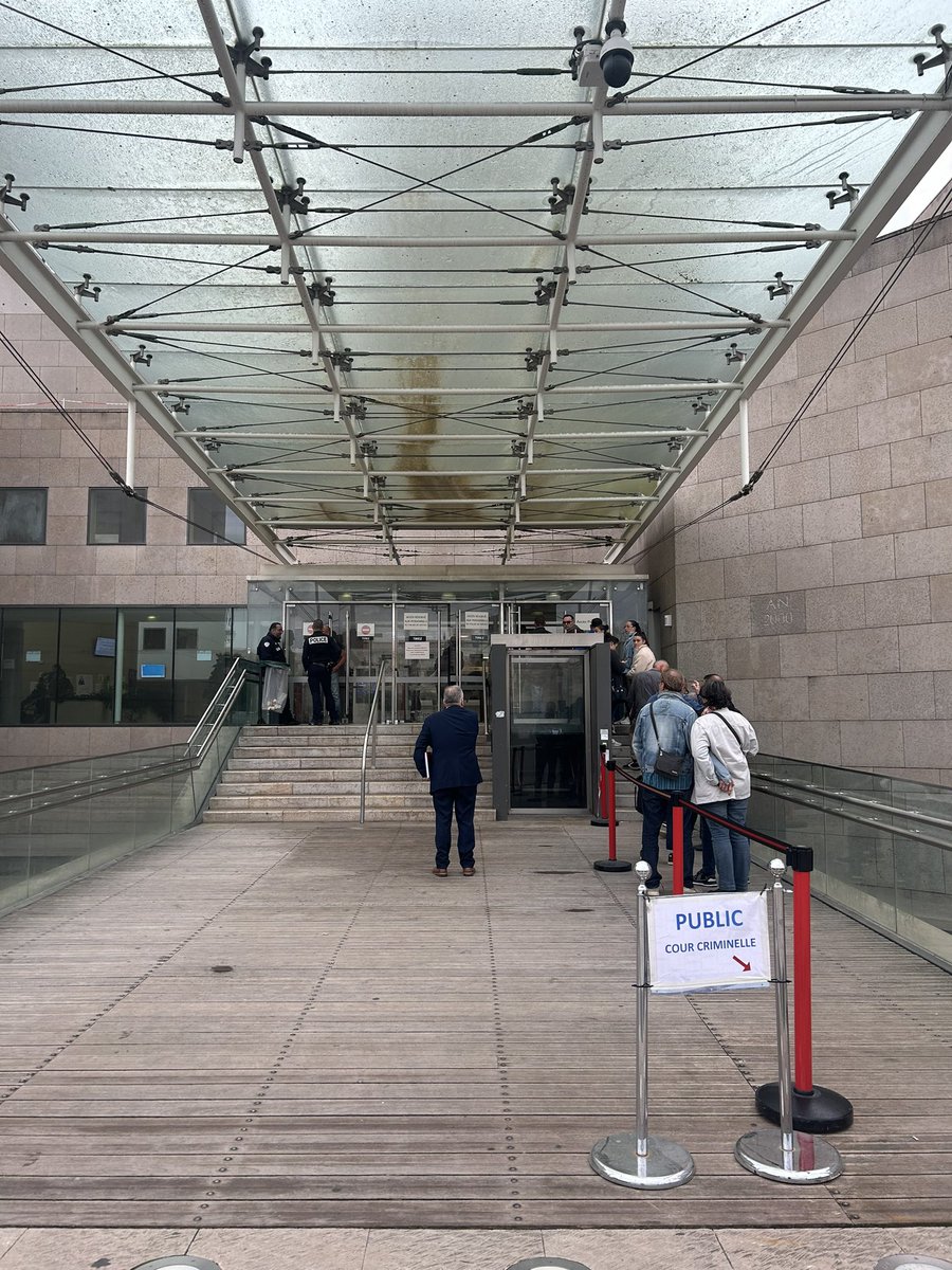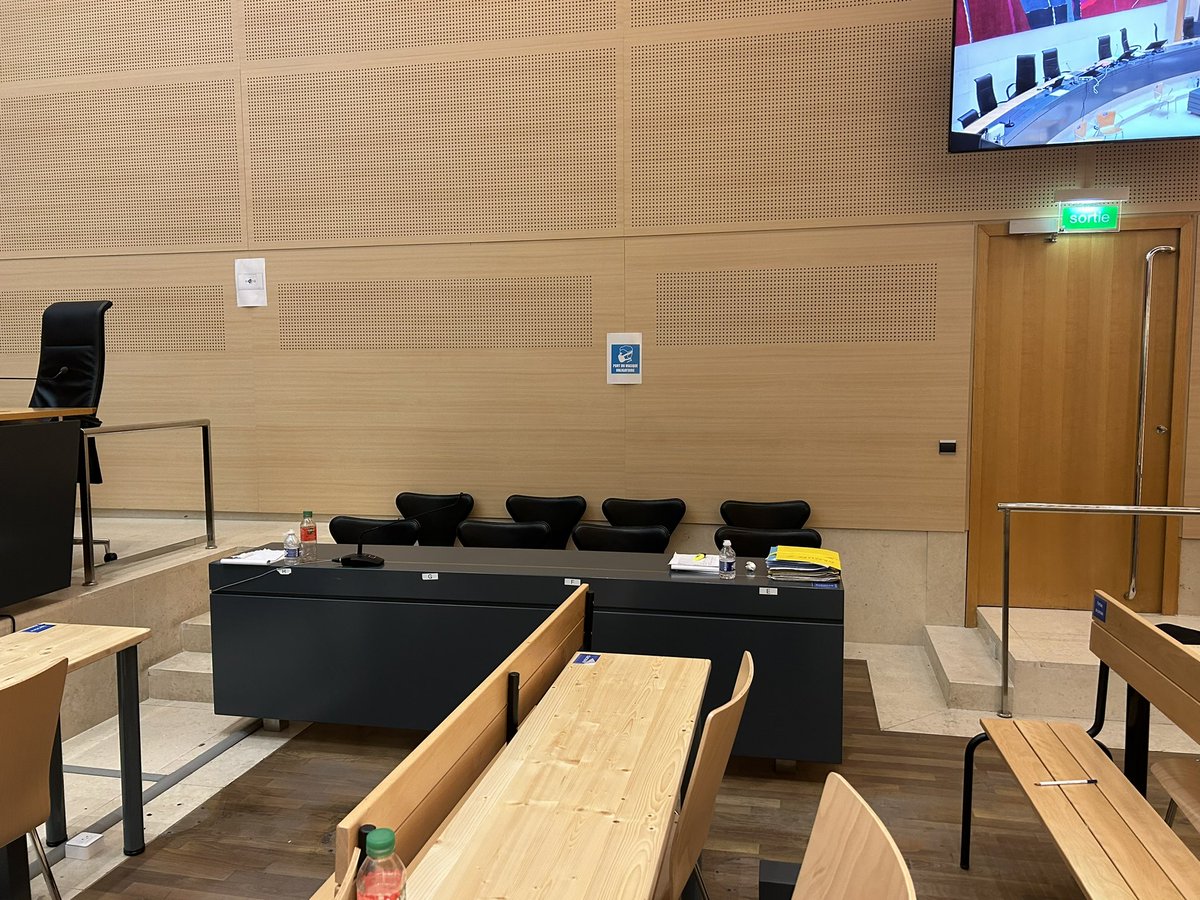 Les dernières personnes viennent de rentrer en salle de retransmission : 90 places y sont prévues pour le public au total, en plus de la trentaine en salle d’audience principale.