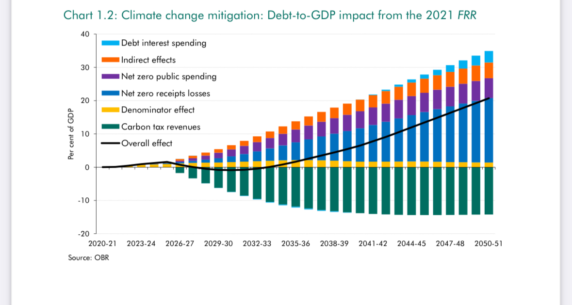 Today's OBR report into the the long-term impacts of climate and ageing on UK debt is typically sobering: to follow neoliberal strictures, we would need 50 years of unremitting austerity...1/ But here's why we don't need to...🧵