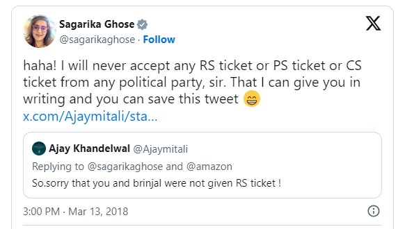 So Rajya Sabha member Sagarika demanded a full statement from Govt on US accusations in Parliament