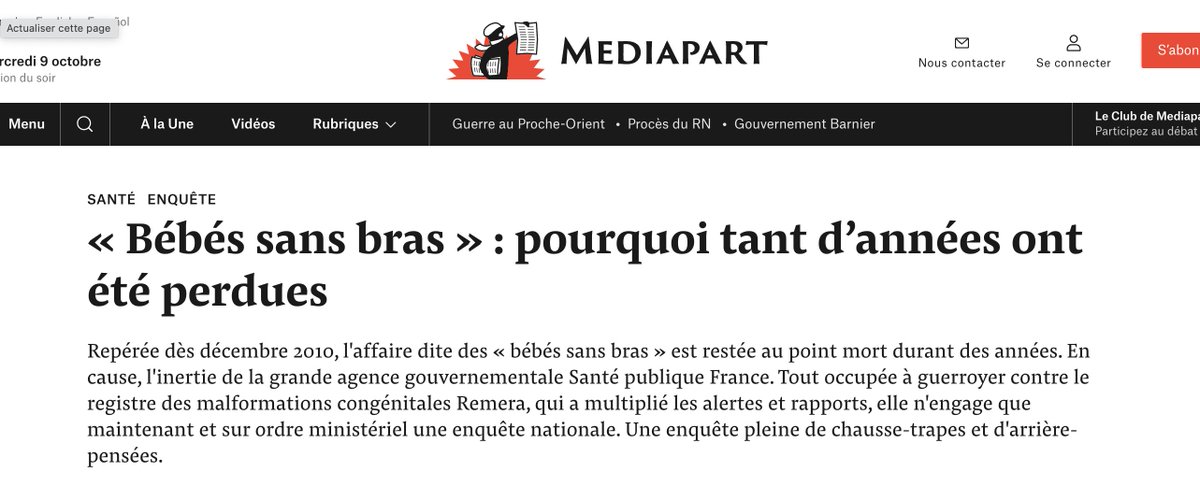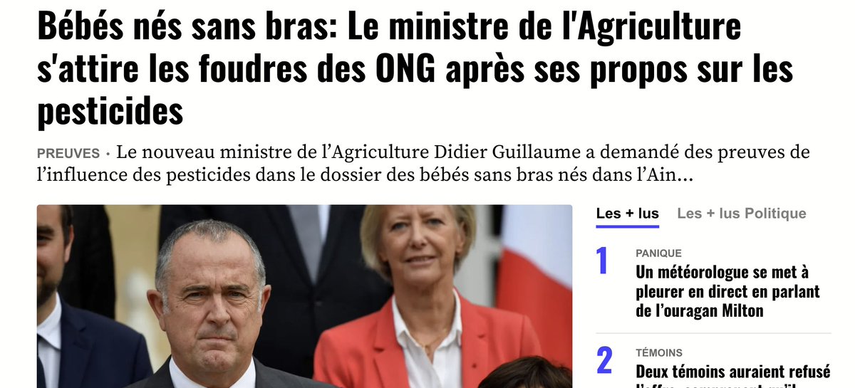 L'affaire, donc, éclate le 15/10/2018, par un article retentissant. On y apprend qu'une lanceuse d'alerte, tenante du registre des malformations en Rhône-Alpes, serait punie pour avoir révélé un possible scandale sanitaire : 7 enfants nés "sans bras" en zones agricoles.😱
