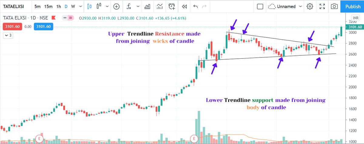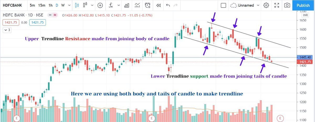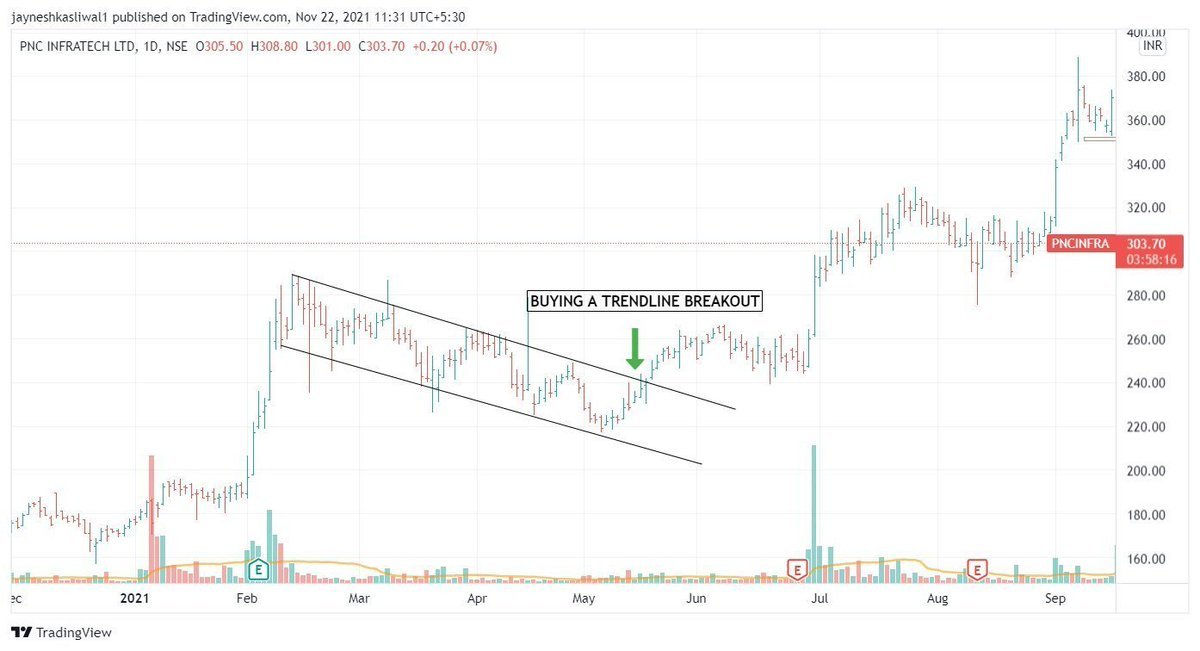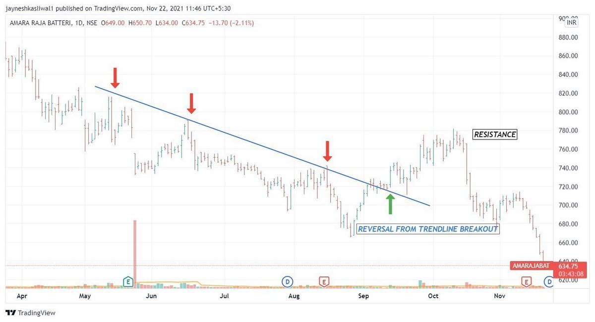 once the trend is changed with emergence of HH HL structure 2. You can initiate long postion with Stop at previous swing low 3. Sometimes you may find retest on trendline also 9/n