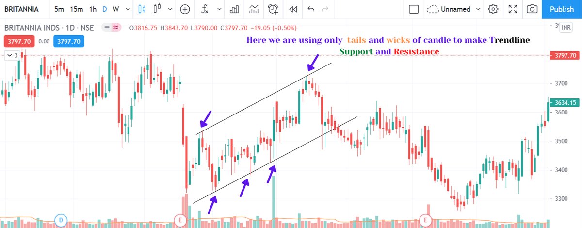Our main aim to draw trendline is to get maximum points of price on a line .