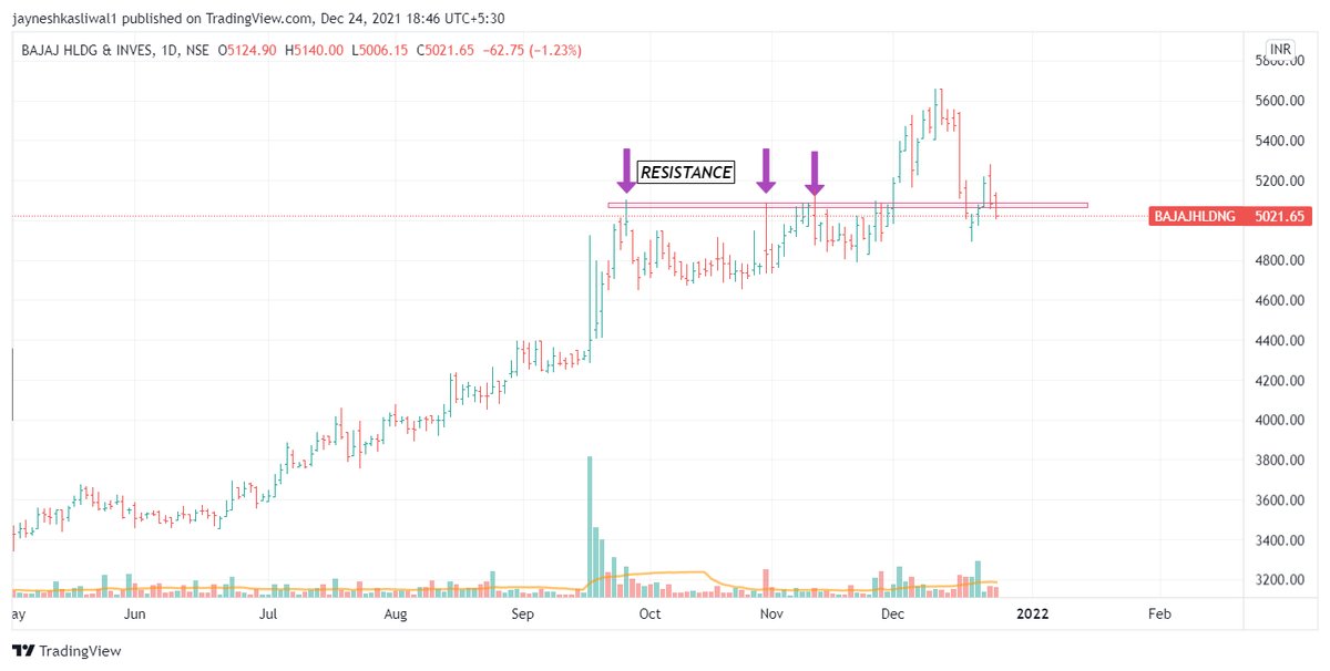⏬Resistance is an area for price ,where it halts due to Supply of the stock at that price . 1/n