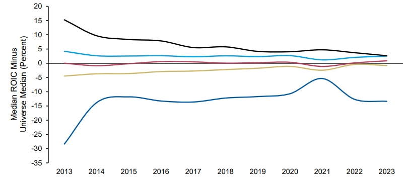 2/ Regression Toward the Mean by Quintile for U.S. Companies, 2013-2023 of ROIC - WACC