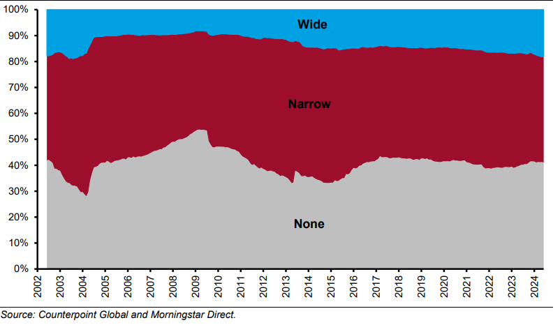 3/ Distribution of Morningstar’s Economic Moat Ratings, June 2002-June 2024