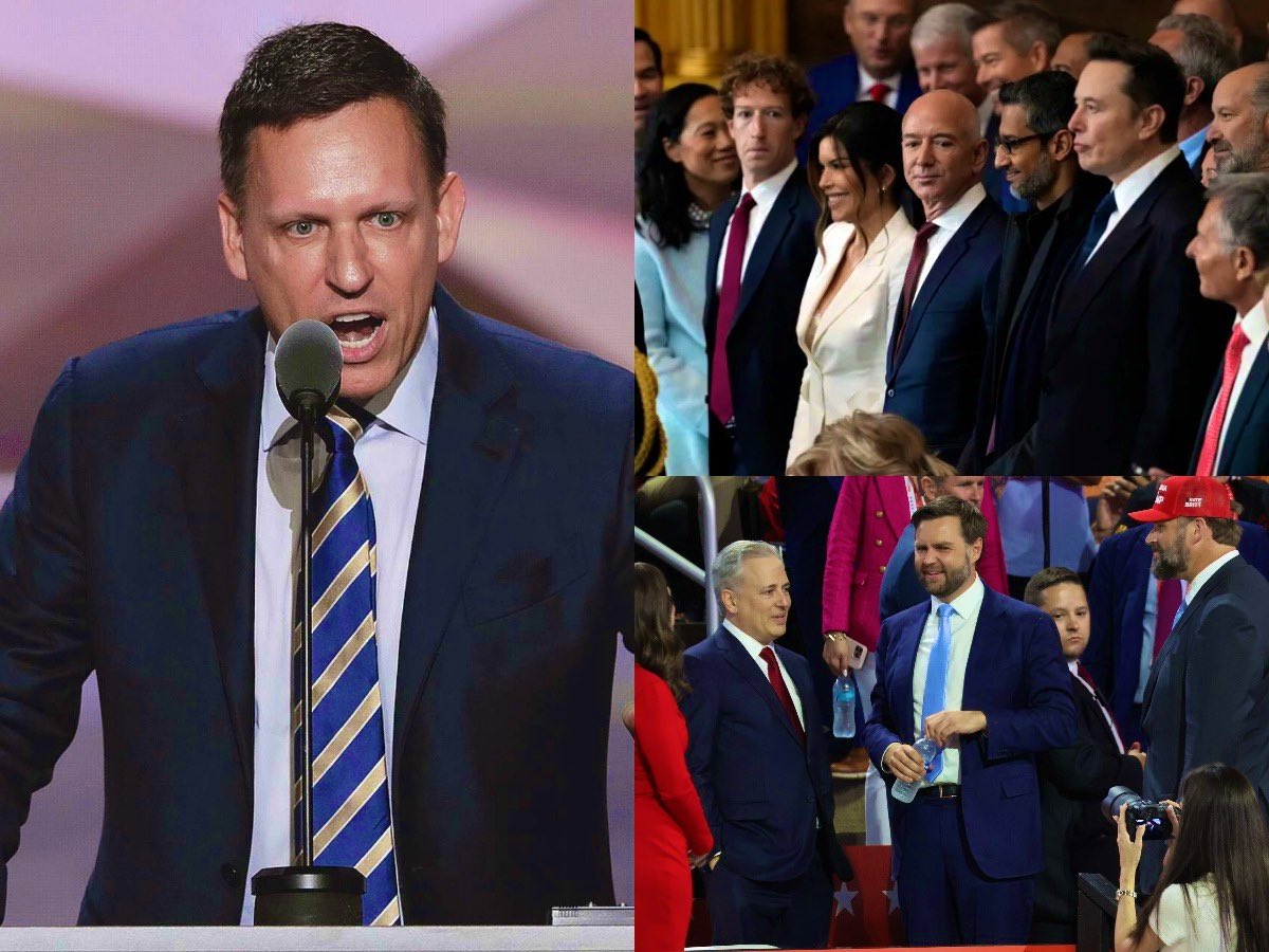 2/9 On Trump’s inauguration, a group of tech oligarchs were present, celebrating.