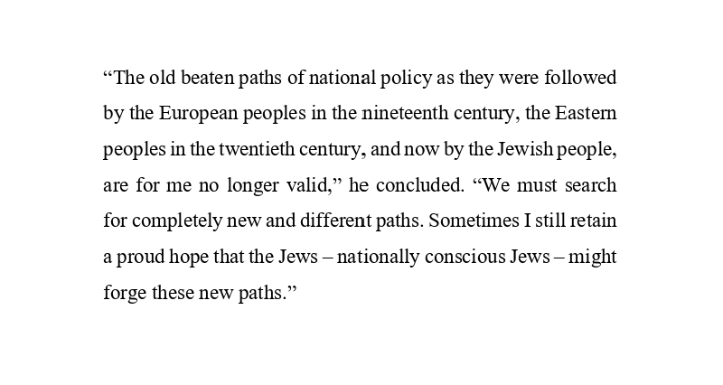 Kohn wrote one month before resigning: “Today I am almost forty years old, twenty of which – the very best years – I have devoted purely to Zionist work and thought. In a certain sense, thus, I feel orphaned. I do not know where to begin.”