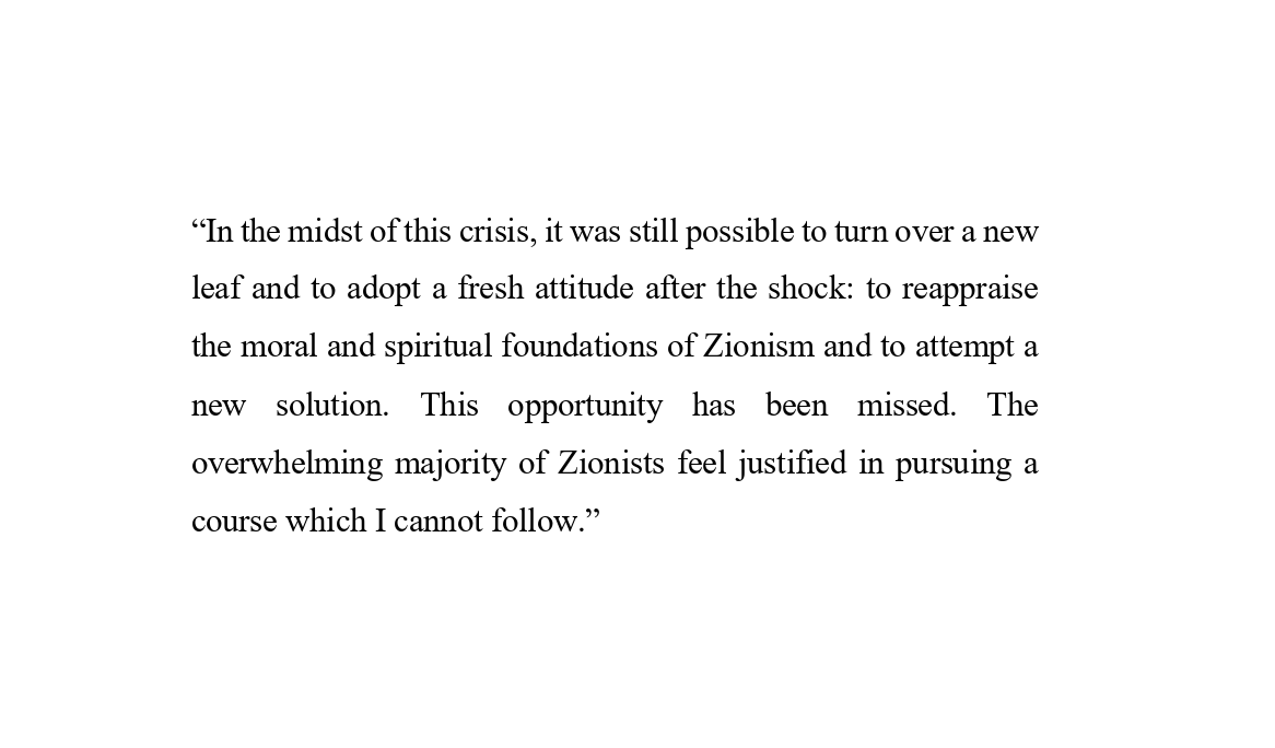 After resigning from the Palestine Foundation Fund. Kohn left Brit Shalom, an organisation he had cofounded five years earlier to advance the idea of a binational, Jewish-Arab state in Palestine. And in 1934, he left Palestine for the United States, never to return.