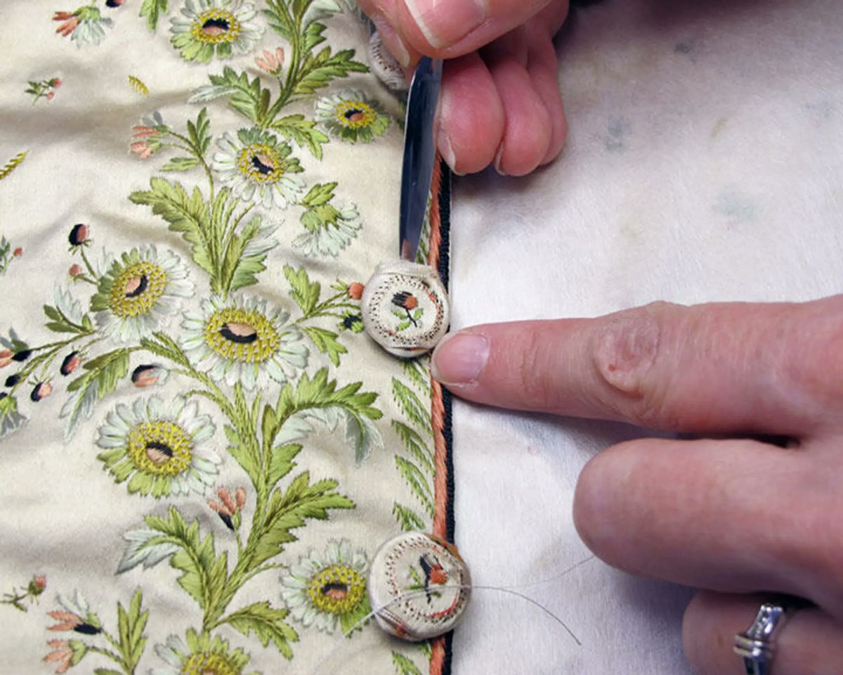 Look at the detailing on French aristocratic dress during the late 18th century. The first photo shows silk-covered buttons on the waistcoat alone. The other photos show the embroidery. This is all done by hand.