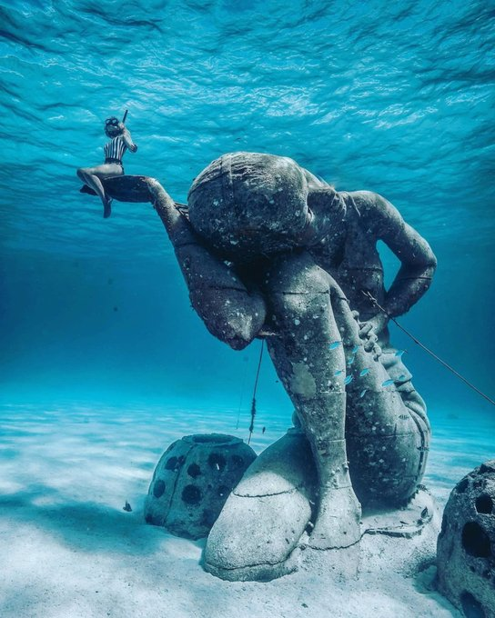 2. Ocean Atlas - At 18 feet tall and 60 tonnes, "Ocean Atlas" is the world's largest underwater sculpture. Located in Nassau, Bahamas, this artwork by Jason deCaires Taylor depicts a local Bahamian girl bearing the ocean's weight on her shoulders