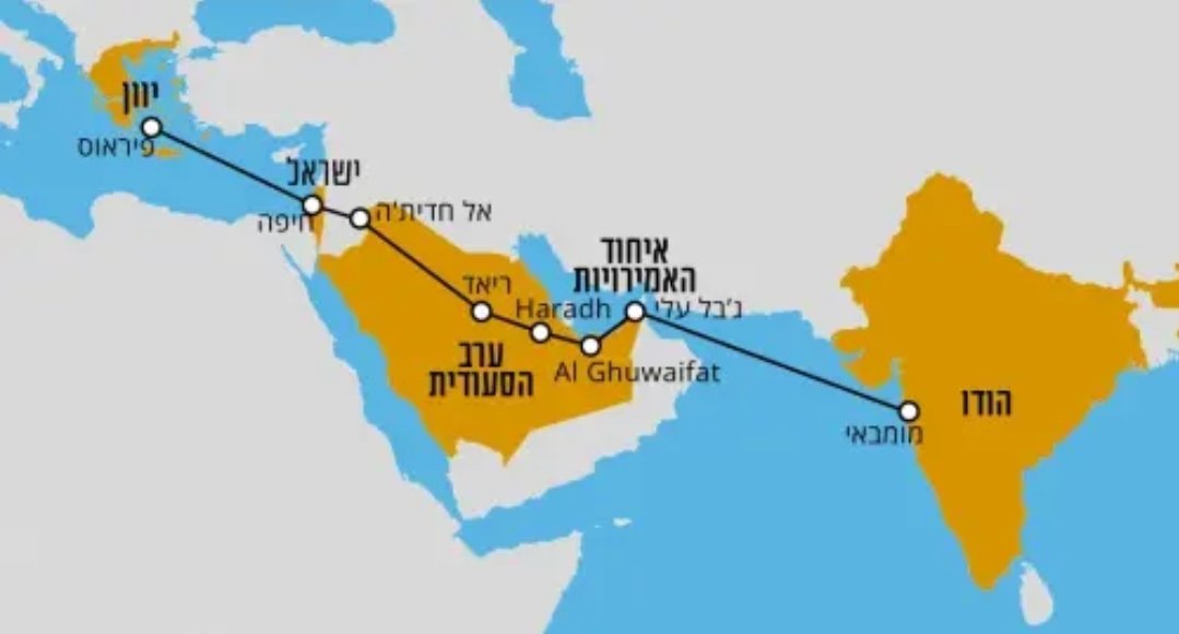 2. שיהפוך את ישראל לחלק דרמטי וחשוב בשינוי הדרך והאופן שבו סחורות ינועו בעולם. בנוסף, הוא עשוי להוביל להכרה פורמלית של סעודיה בישראל ויחסי שכנות חדשים. המסלול מתחיל בבומבי שבהודו, עובר דרך איחוד האמירויות וסעודיה, ומסתיים בפיראוס שביוון דרך נמל חיפה. התהליך יצליח בעקבות החלשות
