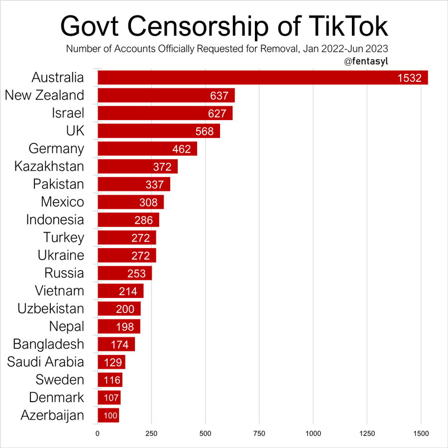 Question: do the non-US Anglosphere countries (AUS, NZ, UK) censor TikTok so much because they're unusually censorious, because of specific concerns about Chinese influence, or something else?