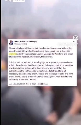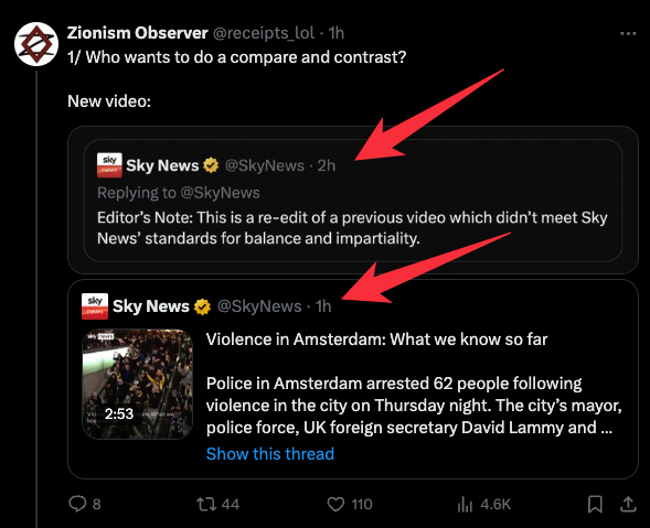 13/ At 1:50 (new video) Sky News removed "their statements [pogrom / anti-semitic violence] failed to mention the assaults by Israeli hooligans against Dutch citizens."