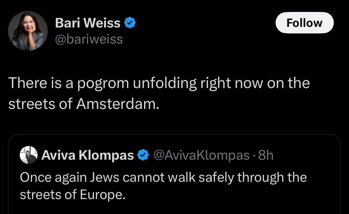 @ishaantharoor 18/ Please see our thread of world leaders lying about the Zionist riot in Amsterdam, which preceded all these media outfits deleting or editing their coverage to be less honest, but match the official propaganda.