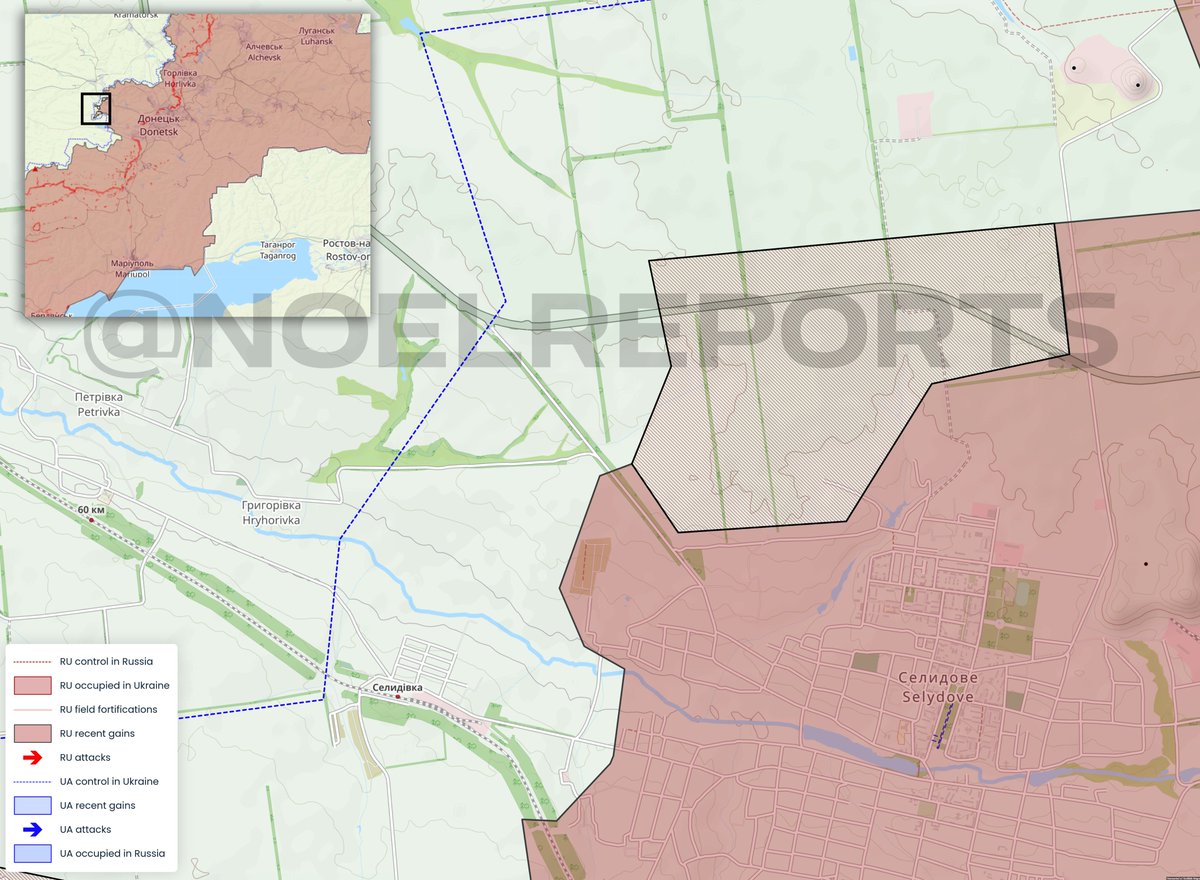 North of Selydove, Russians have restarted active offensive operations and slightly advanced along the main road towards Pokrovsk.