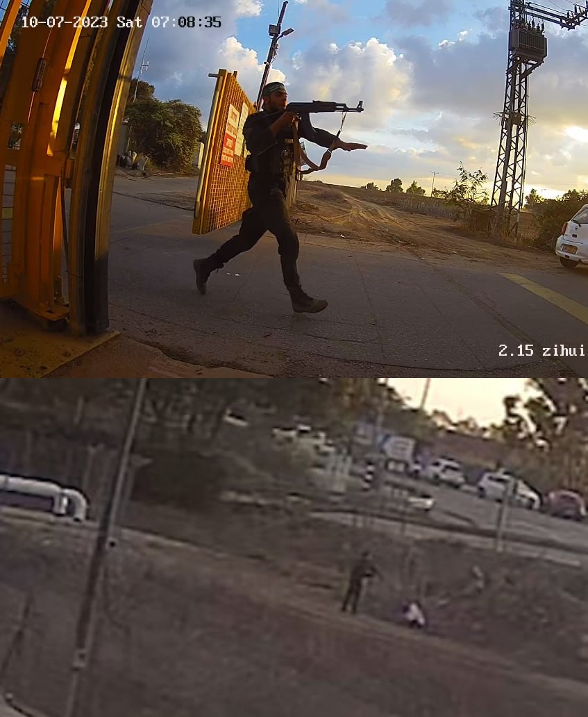 Security camera footage from Kibbutz Alumim shows him killing 2 young women, shooting and killing them at point blank >>