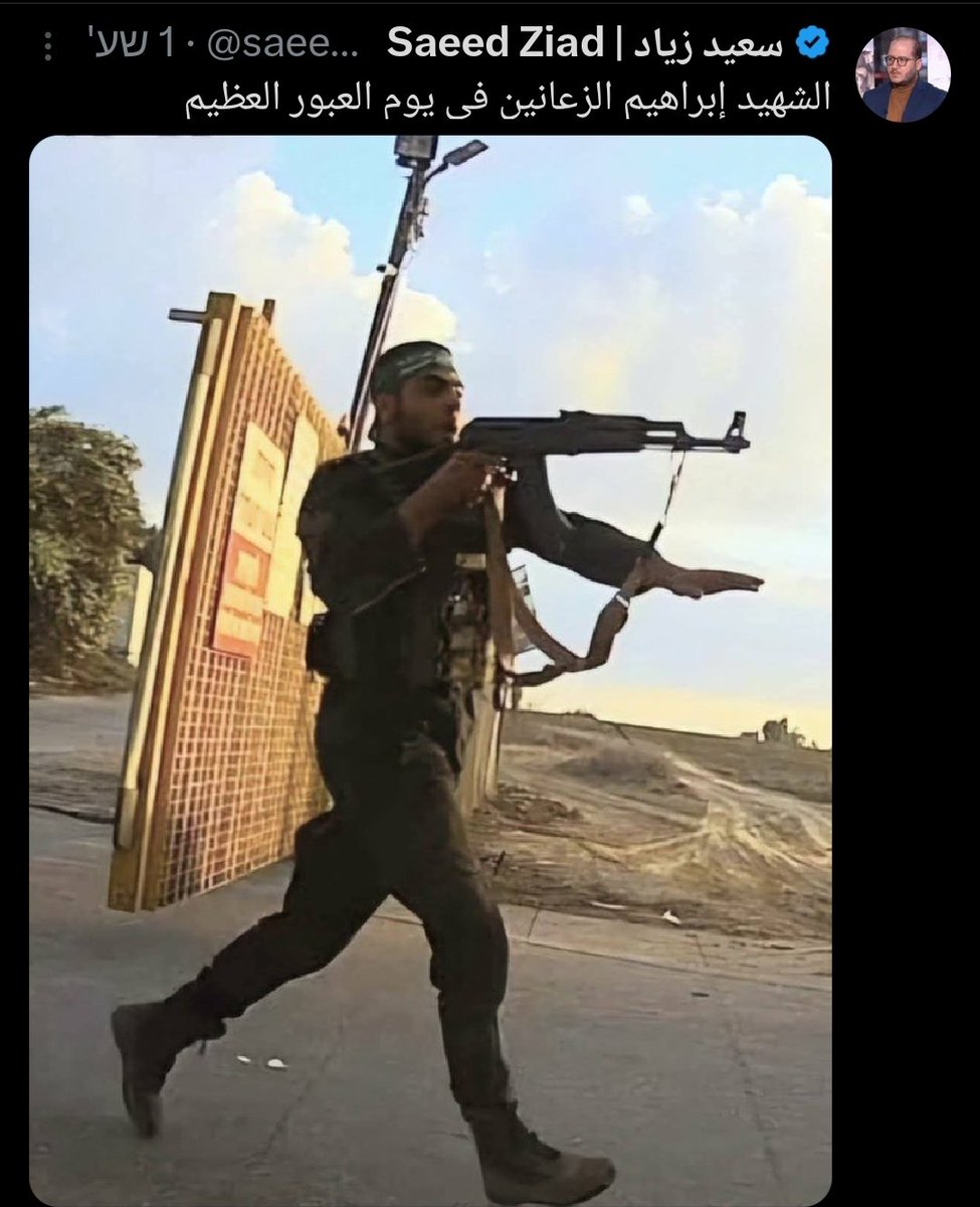 1/ The palestinian terrorist, eliminated last night, mentioned in the quoted post, is the same seen in one of the most horrifying footages from October 7.