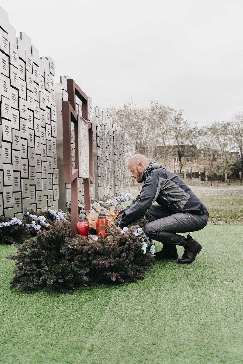 Utanför kyrkan finns en minnesvägg med namnet på dem som avrättades av ryska förband under deras tid i staden. Jag lägger ner en blombukett med jämnt antal blommor, i Ukraina en tradition vid sorgehögtider. Bredvid finns ytterligare en vägg med namn. Den tillhör de personer från staden som ryssarna kidnappade och tog med sig tillbaka. De sitter idag fängslade i Ryssland, dömda för brott i skenrättegångar. Ryssland vägrar låta dessa personer ingå i fångutväxlingar eftersom de ej anses vara kombattanter. Det är precis så groteskt som det låter och en påminnelse om att denna konflikt också handlar om mer än bara territorium.