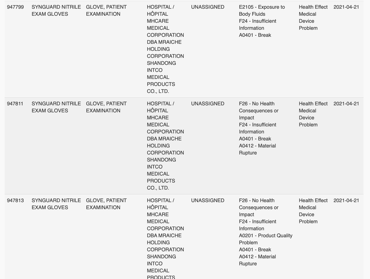 Lots of SYNGUARD NITRILE EXAM GLOVES issues..