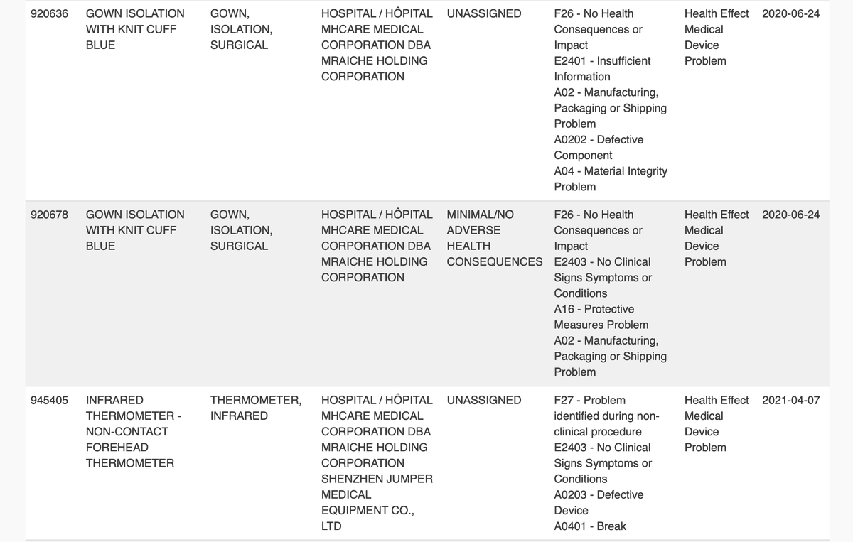 Some mistakenly filed as PRIMED, but all correctly identifying importer MHCare Medical and/or the Beifa Group Chinese exporter printed on the box.