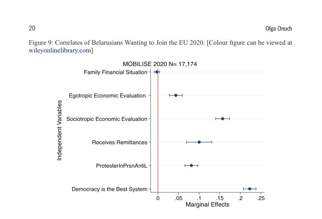 Being a democrat elevates the likelihood that a #Belarusian agrees with #Belarus joining the EU by 22 percentage points at a 99% sig level