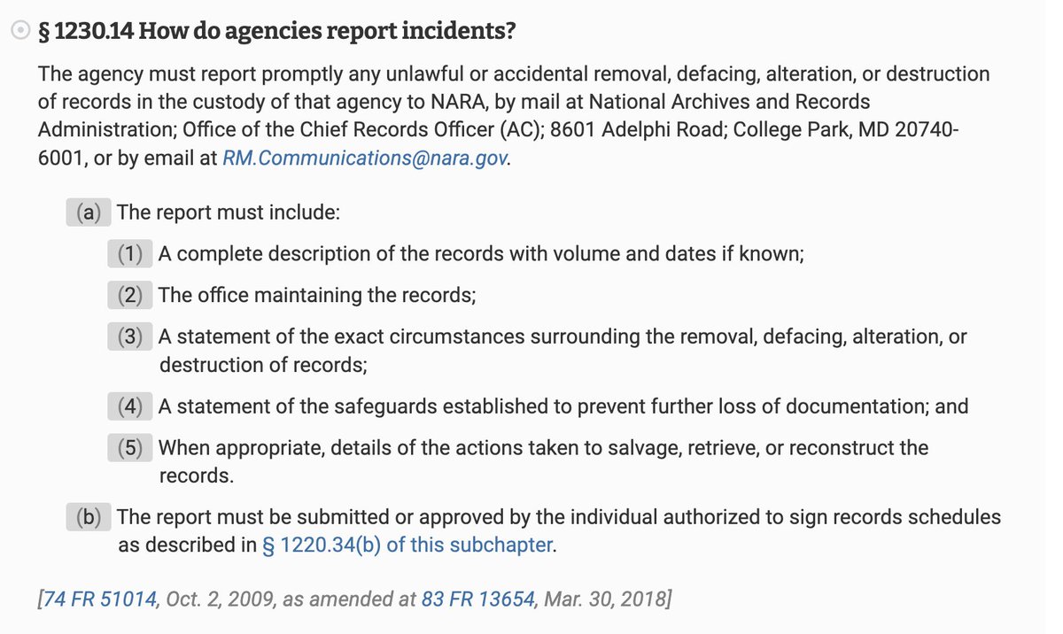 5) It is against federal law for an agency, and responsible agency officials, not to report the concealment or destruction of federal documents and records. ecfr.gov/current/title-…