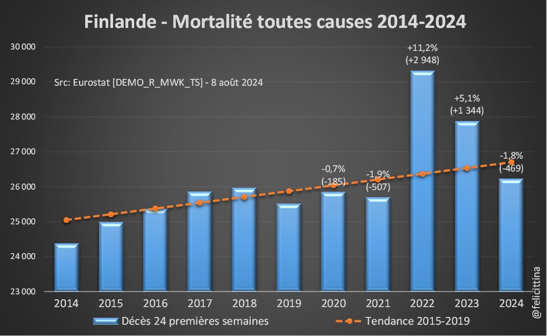 Les valeurs obtenues sont un peu moins pessimistes mais on a dans tous les cas des surmortalités 2022‑2024 très supérieures à celles de 2020 & 2021