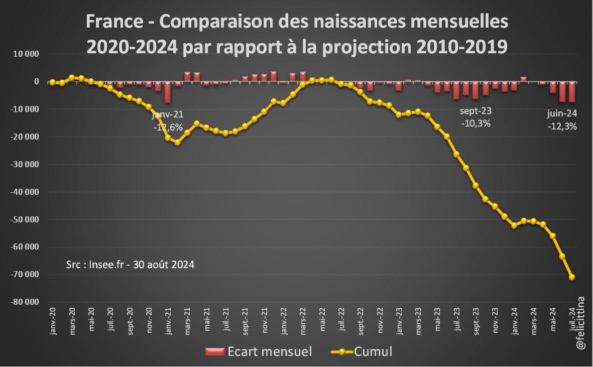 🇫🇷#France #natalité 1. A chaque nouvelle publication d'@InseeFr, le bilan s'aggrave un peu plus.