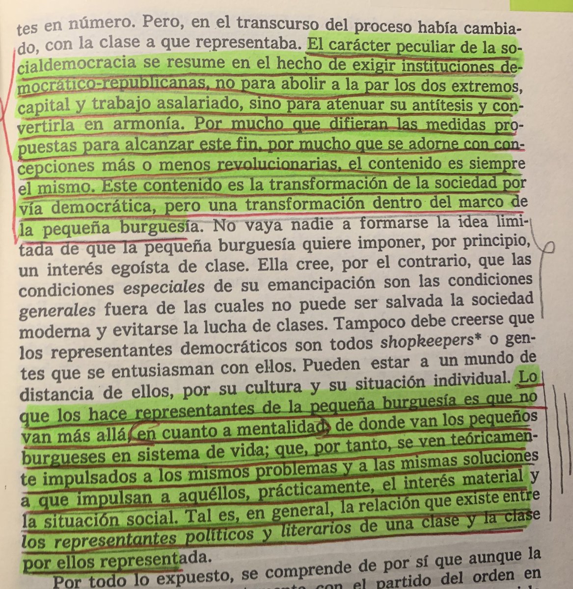 Lo cierto es que ya Marx, al que parafrasea este personaje grotesco, daba cuenta de las limitaciones del programa socialdemócrata y de la participación de este en el programa genérico del Capital, consituyéndose como parte integrante suya.