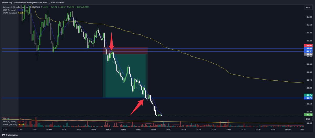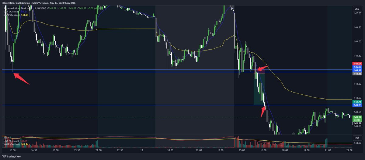 I took $AMD Puts off the PDL Retest today and PML Break and Psych Level Break (Talked about earlier)