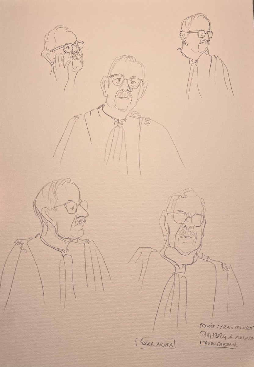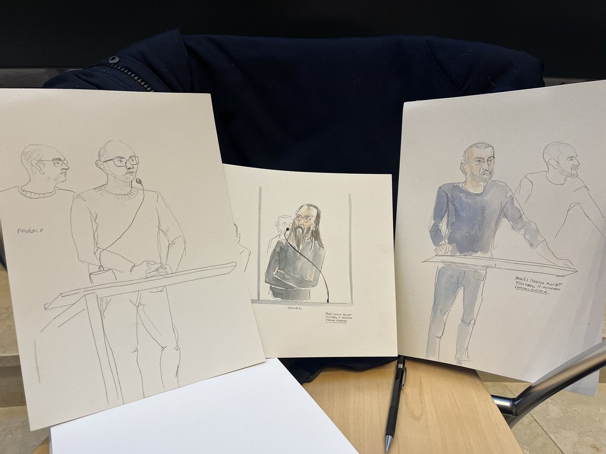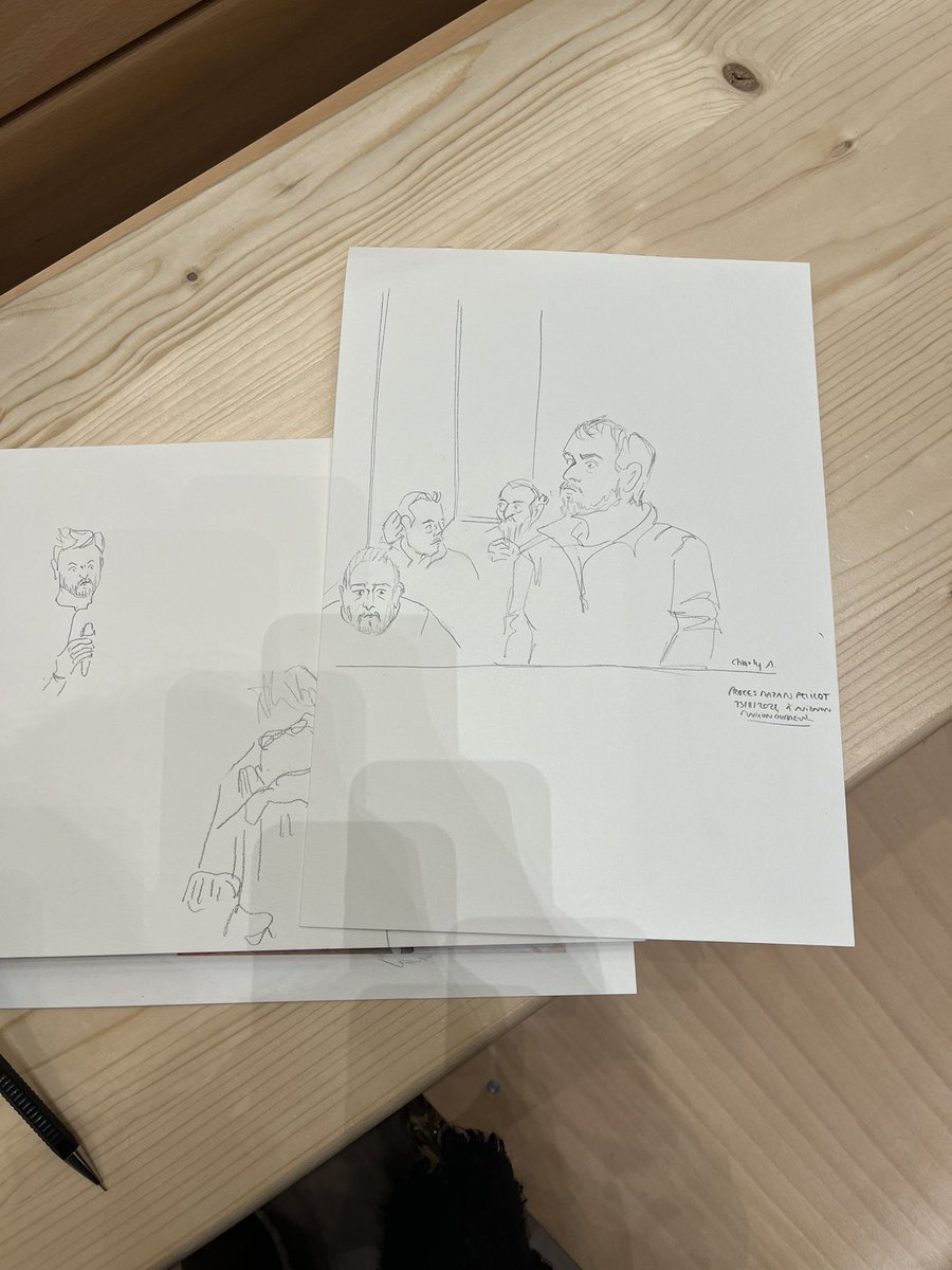 @RMCInfo Reprise de l’audience avec l’interrogatoire de personnalité de Nicolas F. à droite sur le le croquis ✍️