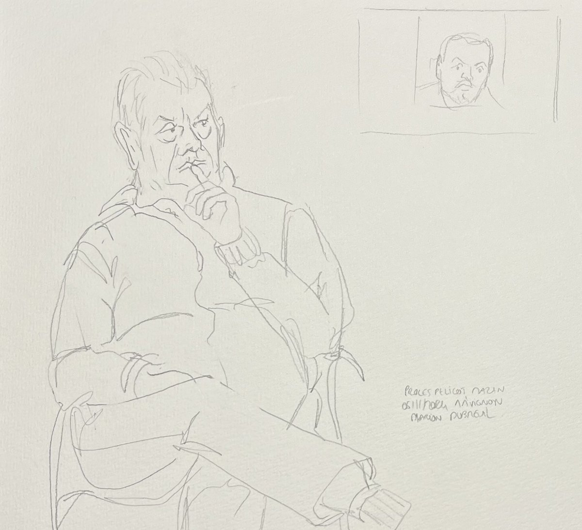 Je garderai la même position qu’au procès, journaliste et dessinatrice judiciaire.