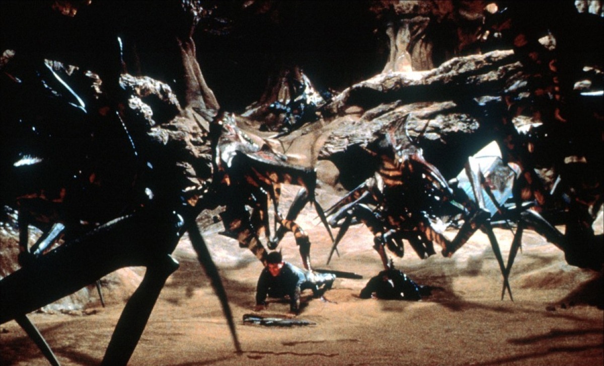 Special effects guru Phill Tippett was hired to do the bugs effects work as he’d done stop motion effects for ED-209 in RoboCop, and worked on Jurassic Park. Craig Hayes designed the bugs and to save time, they revised designs they’d done for Tremors 2: Aftershocks.