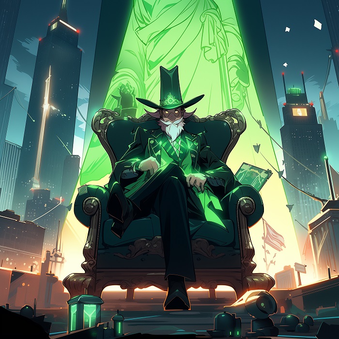 Lord Sam, usurper of gold, known merely as “the Uncle” to many, sits at the Cantillon Source and wields the mighty dollar. Liberating in his youth, now oppressive in his age. His monetary power reigns supreme but shows increasing signs of decadence, decay, and defiance.
