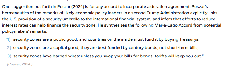 Any multilateral accord can extend to duration as well. If countries want to remain inside the U.S. trade and security umbrella, they can help share the burden of reserve asset and defense provision by terming out their Treasury holdings. /26