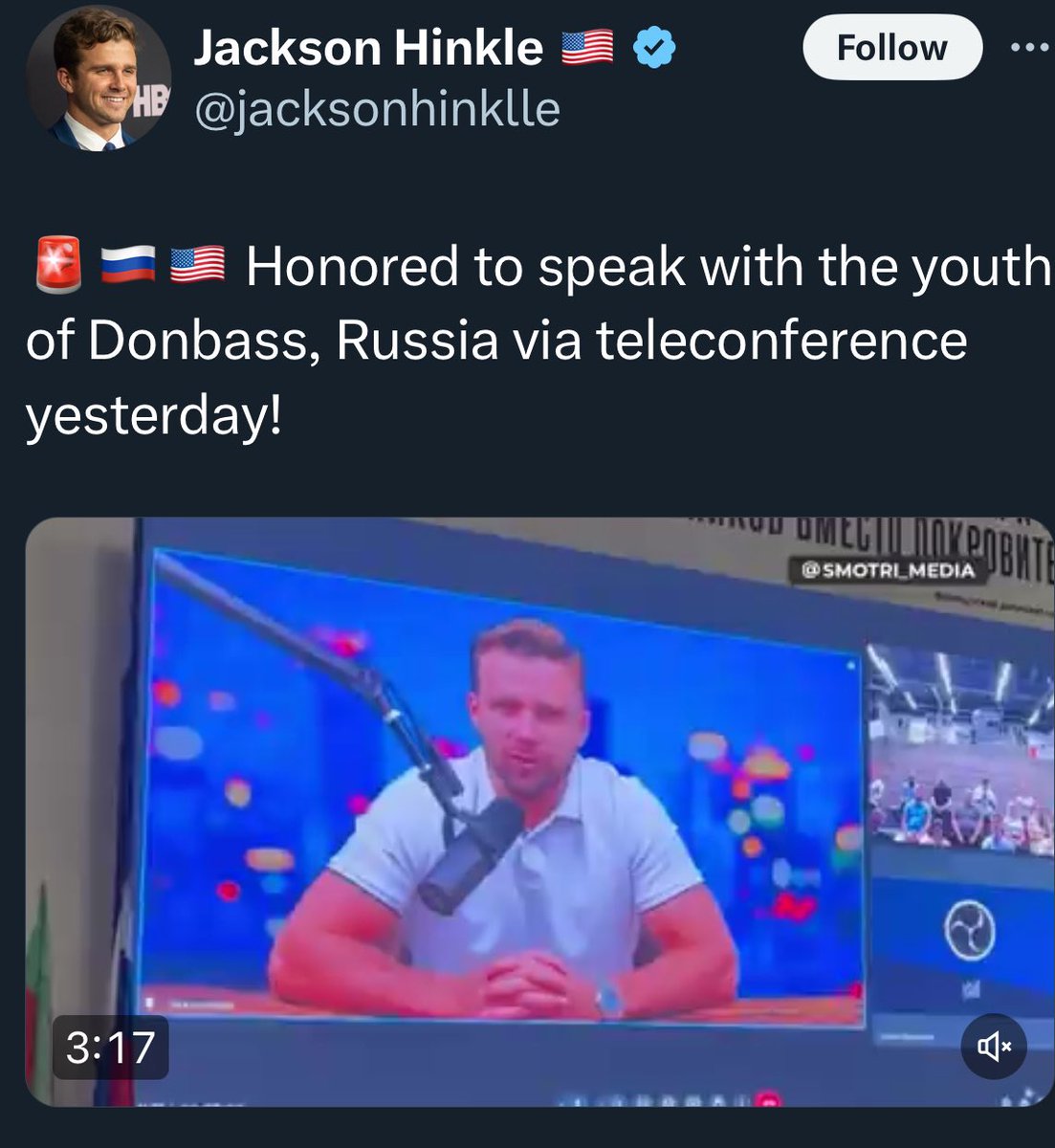 Jackson Hinkle é um dos grandes propagadores da filosofia de Aleksandr Dugin nos Estados Unidos, e uma figura carimbada nos eventos organizados pelos governos de Rússia, China, Irã e Venezuela. Ele também é próximo de figuras como Tucker Carlson e Alex Jones. theguardian.com/us-news/articl…
